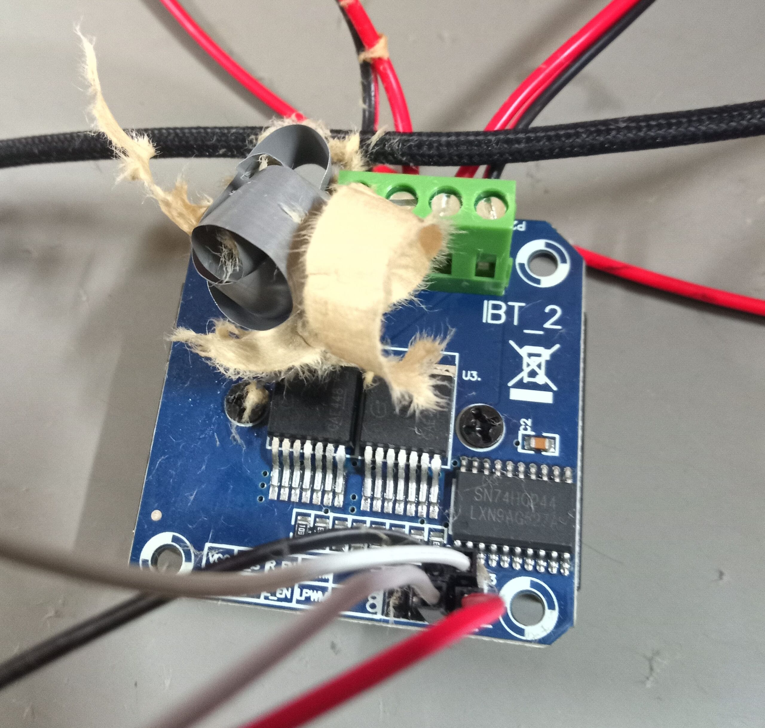 何度も接続場所はチェックしたはずなのに・・・モータードライバーの初期不良なんじゃ?と疑いましたが、一旦バラして接続し直ししている時に気づきました。